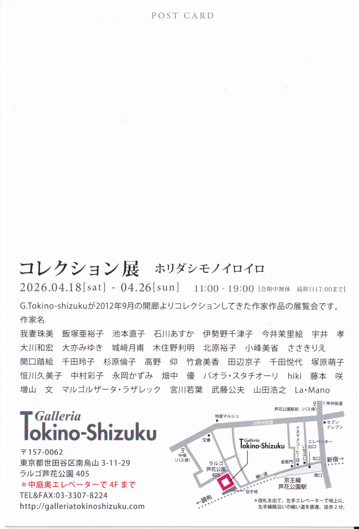 我妻珠美、飯塚亜裕子、池本直子、石川あすか、伊勢野千津子、今井茉里絵、宇井 孝、大川和宏、大亦みゆき、城﨑月甫、木住野利明、北原裕子、小峰美省、ささきりえ、関口踏絵、千田玲子、杉原倫子、高野 仰、竹倉美香、田辺京子、千田悦代、塚原萌子、恒川久美子、中村彩子、永岡かずみ、畑中 優、パオラ・スタチオーリ、hiki、藤本 咲、増山 文、マルゴルザータ・ラザレック、宮川若葉、武藤公夫、山田浩之、La・Mano