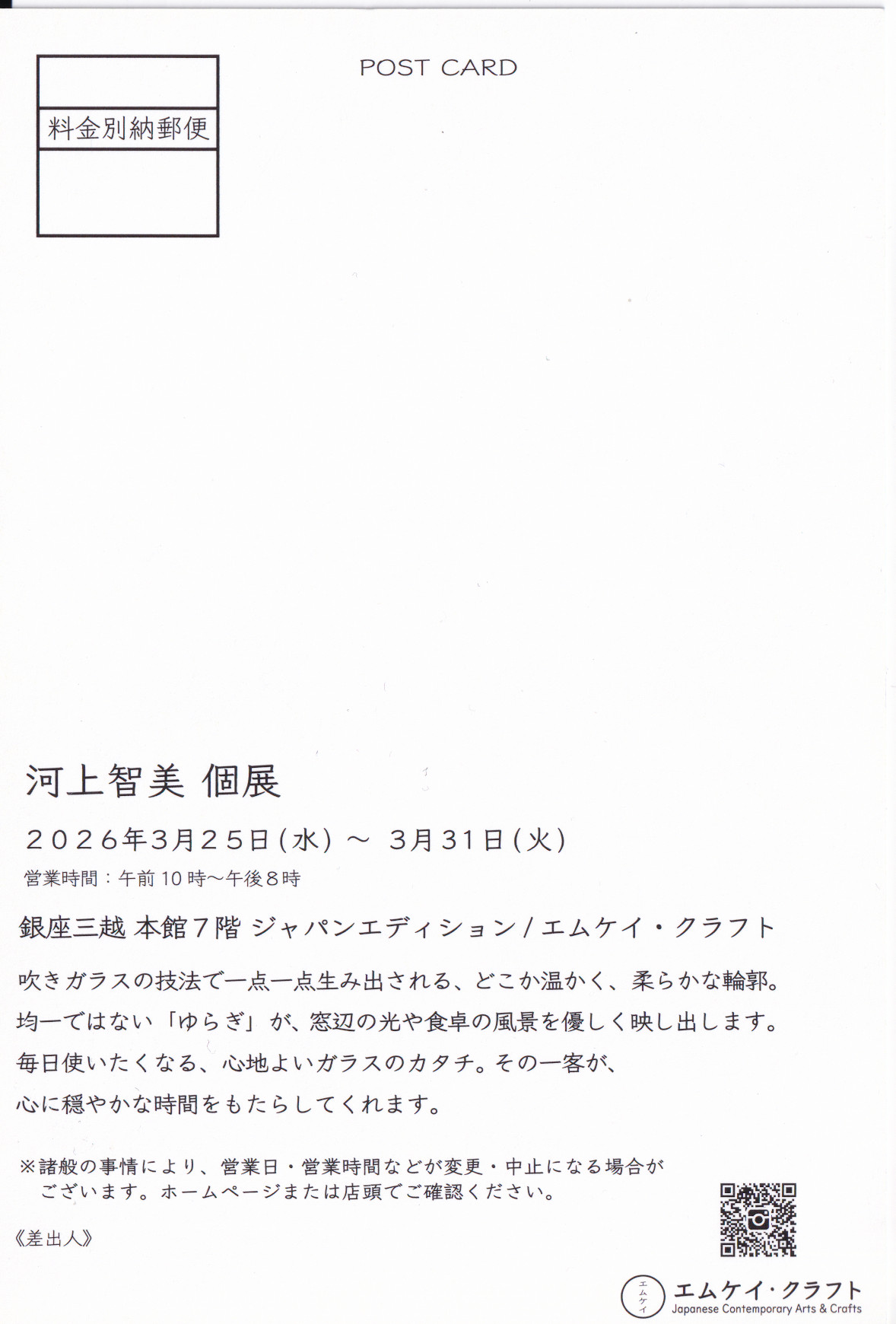 銀座三越 本館7階 ジャパンエディション/エムケイ・クラフト
