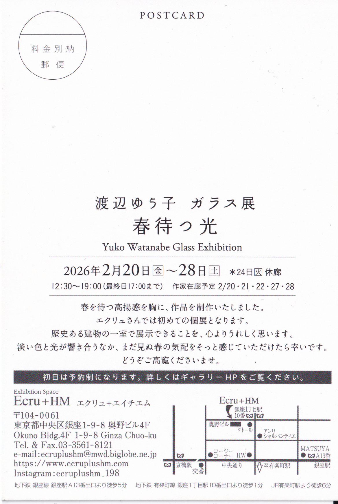 渡辺ゆう子 ガラス展 春待つ光